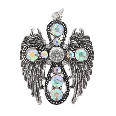CROSS ANGEL WING RHINESTONE BLING PENDANT