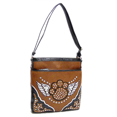 HL12112 PAW PRINT MESSENGER BAG BROWN