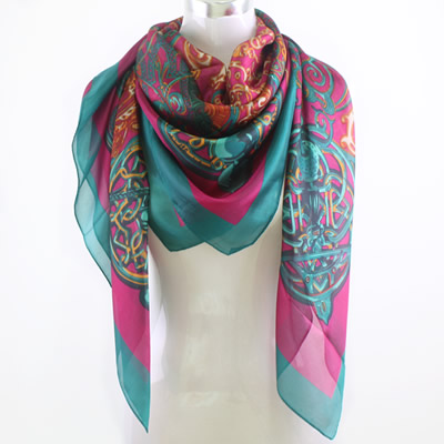51-13010913 SILK SCARF TURQ/HOT PINK