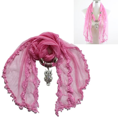23-13010707 LACE SCARF OWL LIGHT PINK