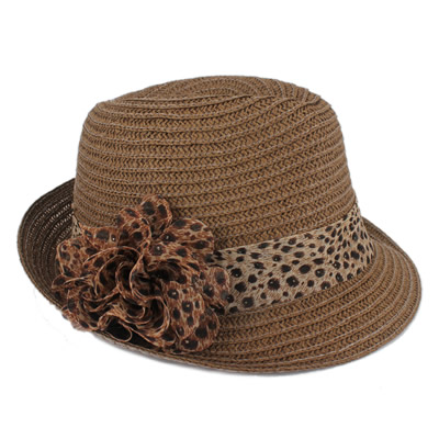 42-13010602 LEOPARD FLOWER HAT DARK BROW