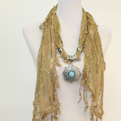 2013031103 LACE SCARF TURQ LIGHT BROWN