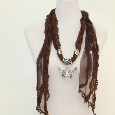 2013031104 LACE SCARF PISTOL DARK BROWN