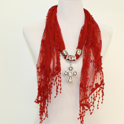 2013031107 LACE SCARF CROSS RED