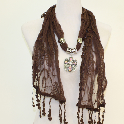 2013031108 LACE SCARF CROSS/WING DK. BRO
