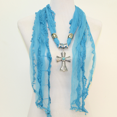 2013031109 LACE SCARF TURQ CROSS BLUE