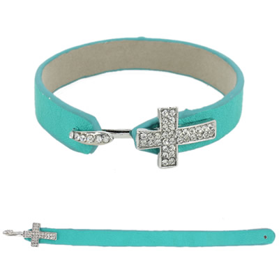 38-13011702 LEATHER BRACELET CROSS BLUE