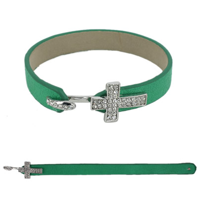 38-13011702 LEATHER BRACELET CROSS GREEN