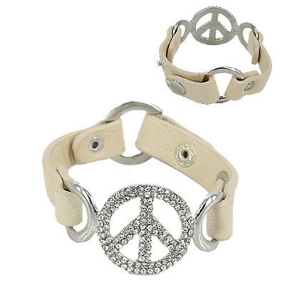 38-13011705 LEATHER BRACELET PEACE BEIGE