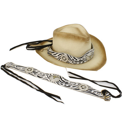 1112-1 HAT BELT LONGHORN WHITE ZEBRA