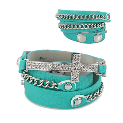 38-13032801 LEATHER CROSS BRACELET TURQ