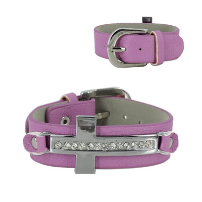 38-13032802 LEATHER CROSS BRACELET PURPL