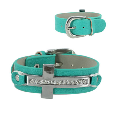 38-13032802 LEATHER CROSS BRACELET TURQ