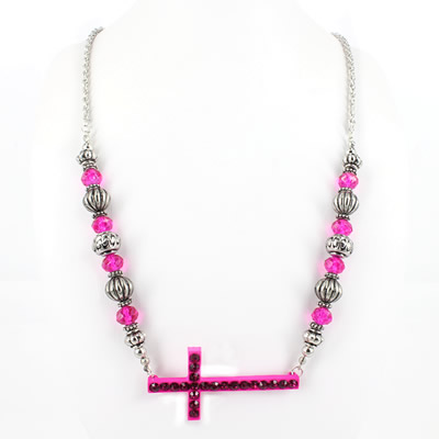 20-13010702 CROSS NECKLACE HOT PINK