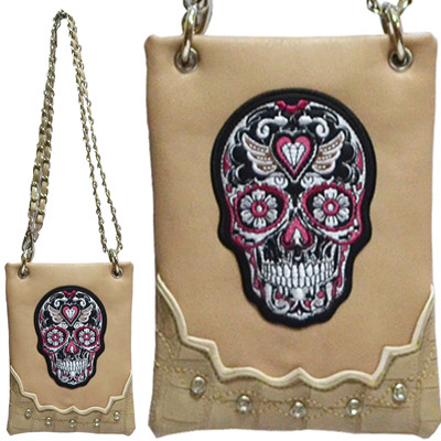 HH447-6 SKULL MINI MESSENGER BEIGE