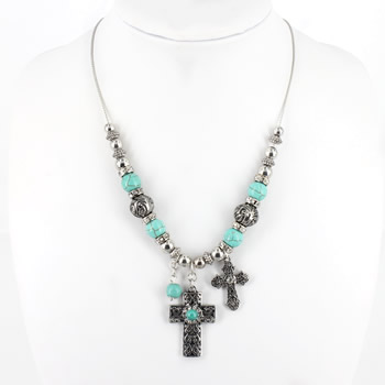 4304-12080808 CROSS TURQUOISE NECKLACE
