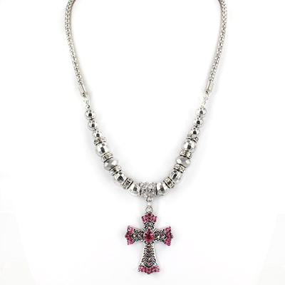 20-12092505 SMALL CROSS NECKLACE HOTPINK