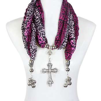 22-12070312 LEOPARD CROSS SCARF HOT PINK