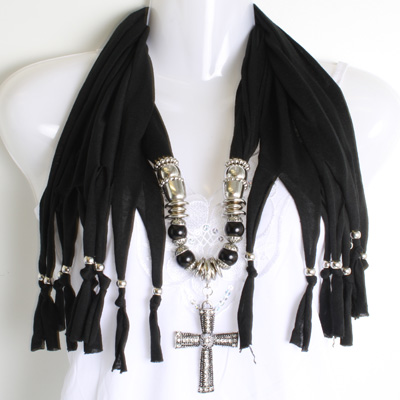 23-12070309 PEARL CROSS SCARF BLACK