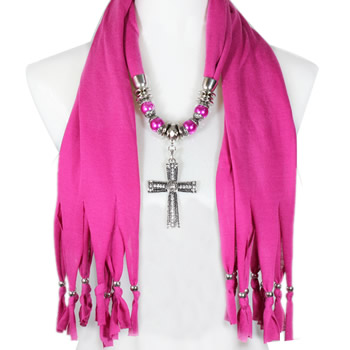 23-12070309 PEARL CROSS SCARF HOT PINK
