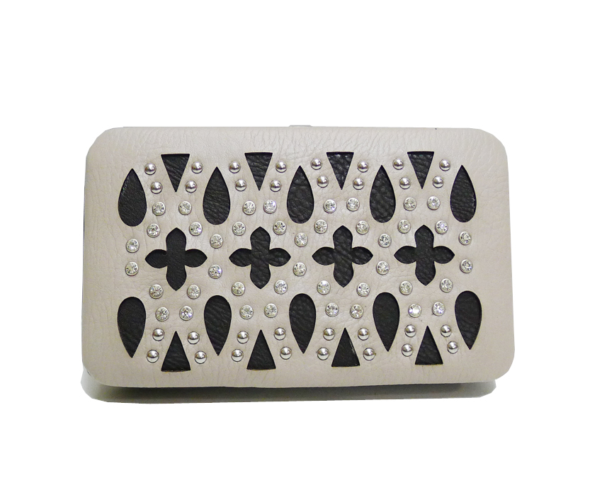 WL1293 RHINESTONE CLIP WALLET BEIGE