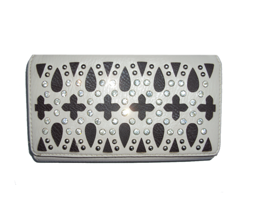 WL1293-B RHINESTONE ZIP WALLET BEIGE