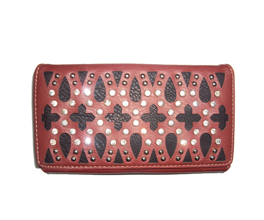 WL1293-B RHINESTONE ZIP WALLET BROWN