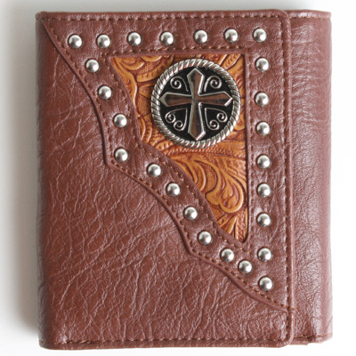 W003-4 3 FOLDER WALLET CROSS BROWN