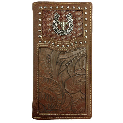 W032-6 CHECK BOOK WALLET LONG HORN BROWN