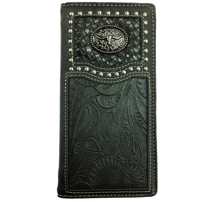W032-14 CHECK BOOK WALLET LongHorn BLACK