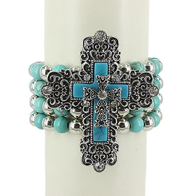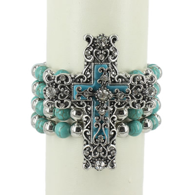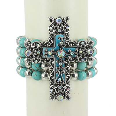 38-13032801 LEATHER CROSS BRACELET TURQ