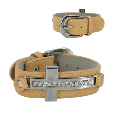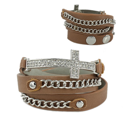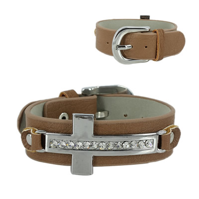 38-13032801 LEATHER CROSS BRACELET BROWN