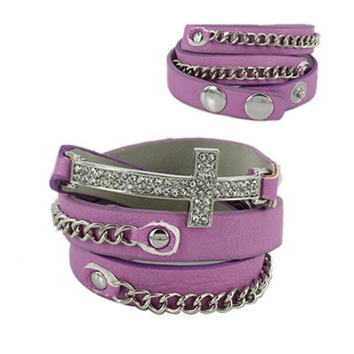 38-13032802 LEATHER CROSS BRACELET PURPL