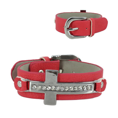 38-13032801 LEATHER CROSS BRACELET PINK