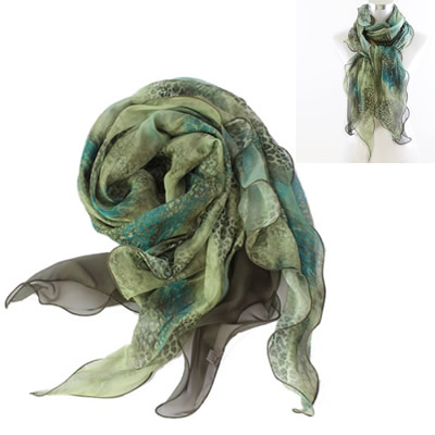 3149-490 SILKEN SCARF LEOPARD GREEN