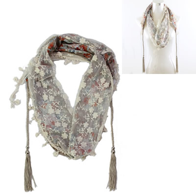 3150-13010912 LACE FLOWER SCARF KHAKI