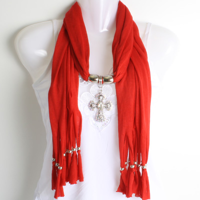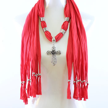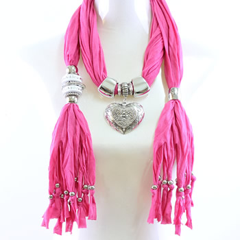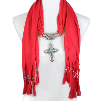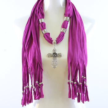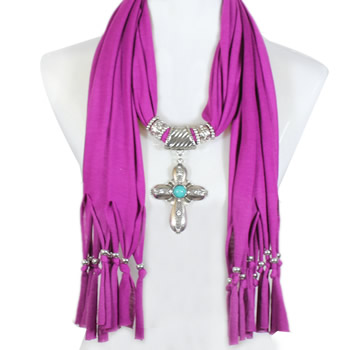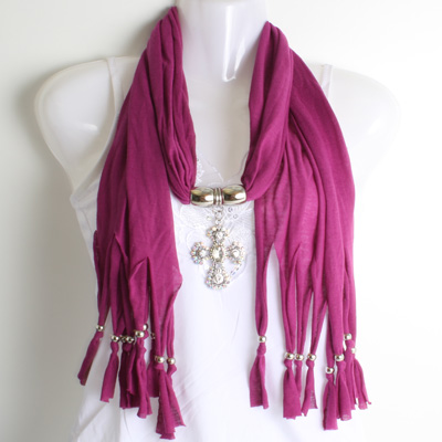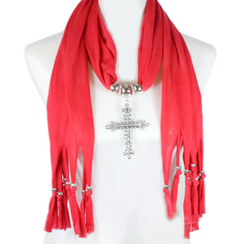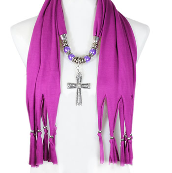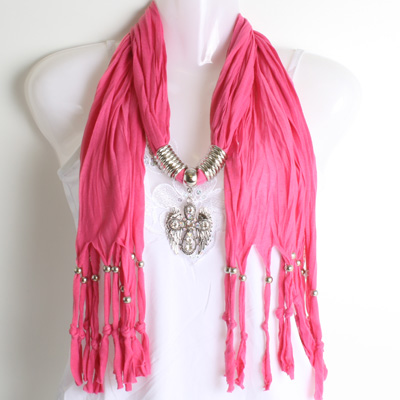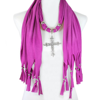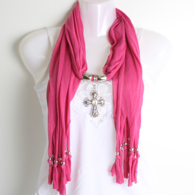 23-12070309 PEARL CROSS SCARF HOT PINK