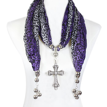 22-12070312 LEOPARD CROSS SCARF PURPLE
