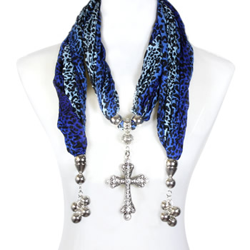 22-12070312 LEOPARD CROSS SCARF BLUE