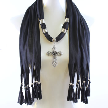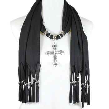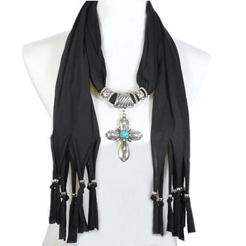 23-12070306 TURQUOISE CROSS SCARF BLACK
