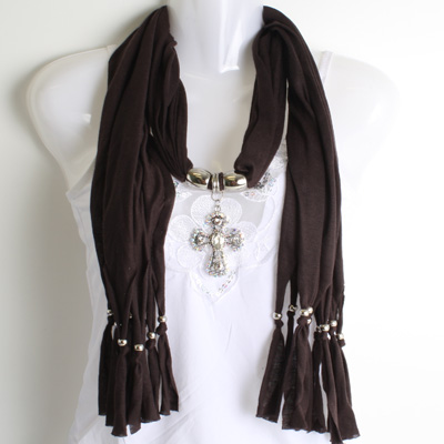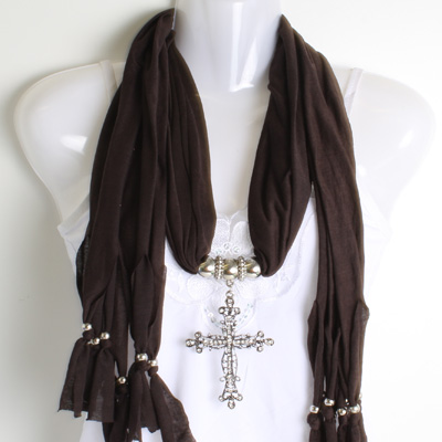 23-12070308 BIG CROSS SCARF DARK BROWN