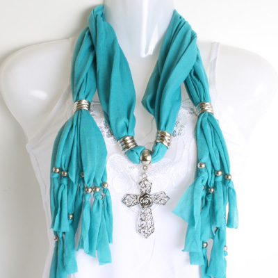 23-12070306 TURQUOISE CROSS SCARF BLUE